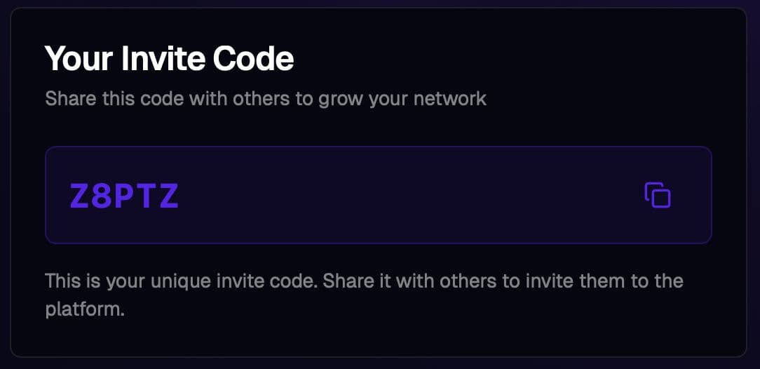 The Network Dashboard functions as the affiliate and referral hub, allowing users to track performance generated through their personal referral link. It displays referral activity, connected users, and cumulative rewards earned through the programme. Participants earn a 10 percent boost from the earnings generated by any user who joins and allocates capital through their referral code.