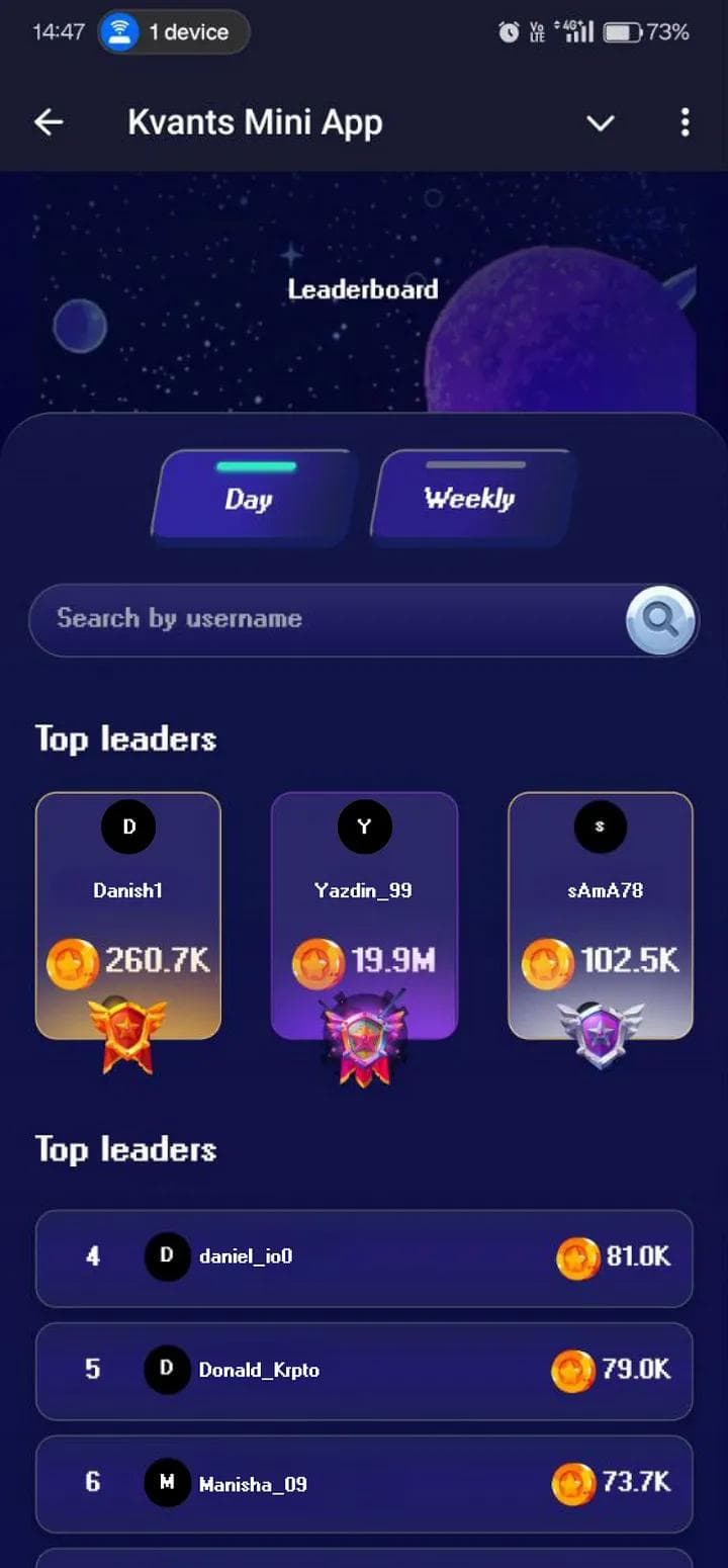Want bragging rights? The Kvants leaderboard is where you prove you’re the real deal. There are daily and weekly leaderboards, giving you plenty of chances to shine.