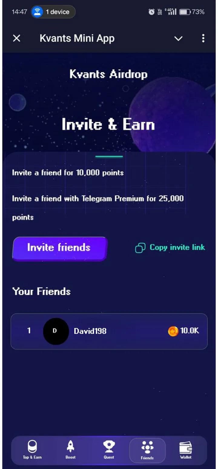 Scoring big in the Kvants mini app is all about knowing when to hit it hard. Whether you’re dominating with Power Taps, hustling referrals, or stacking XP Points from daily tasks, staying engaged and playing smart will keep you ahead of the pack. Stay active, bring in your friends, and master those power-ups — it’s your ticket to winning a big slot in the upcoming Kvants Airdrop.